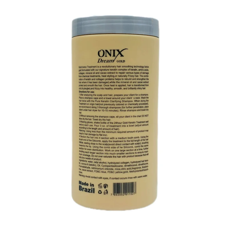 بوتاکس گلد اونیکس یکی از بهترین محصولات احیا و صافی مو از برند معتبر Onix برزیل است. این محصول با فرمولاسیون پیشرفته و ترکیبات مغذی مانند روغن آرگان، روغن نارگیل، کلاژن دریایی و اسید گلوتامیک طراحی شده تا موهای آسیب‌دیده، کشسان و وز را به‌طور کامل ترمیم کند.