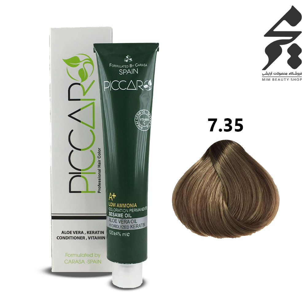 رنگ مو پیکارو شماره 7.35 حجم 120 میلی لیتر رنگ بلوند تنباکویی